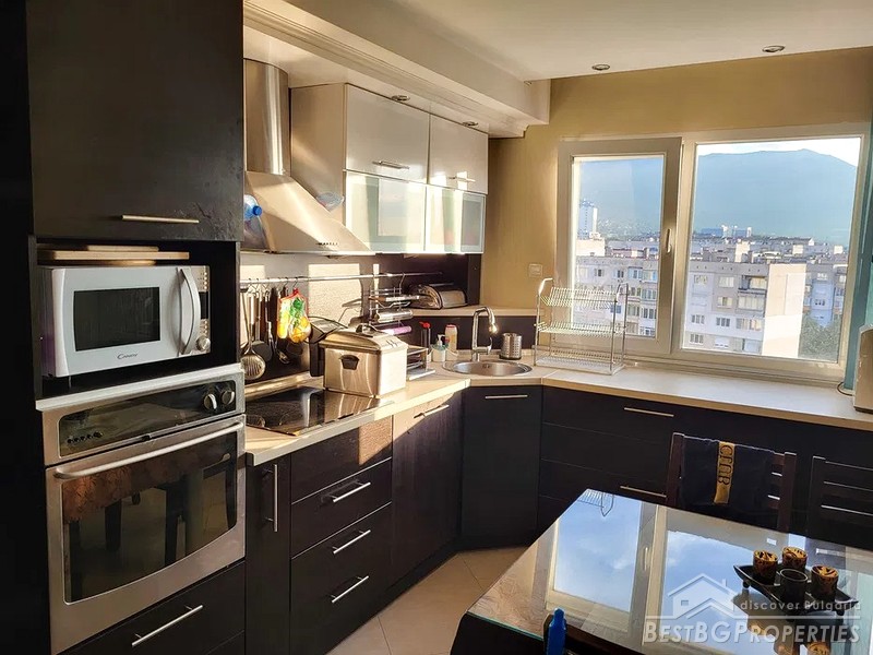 It is a beautifully furnished 3-bedroom apartment. It consists of 3 separate bedrooms, a living room with a kitchen and a dining room, 2 bathrooms with toilets, a corridor and 3 balconies (one was glazed and used as part of the third bedroom and another made into a wet room). The apartment is sold as seen on the photos. The property offers great views of Vitosha Mountain.