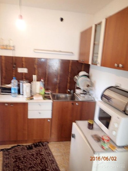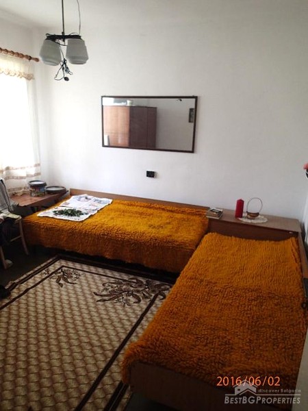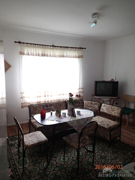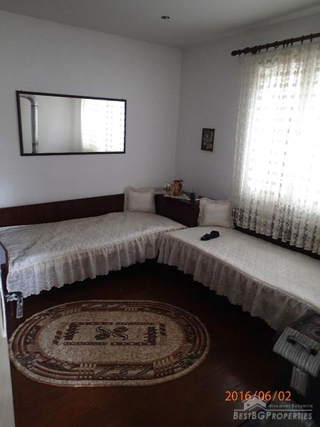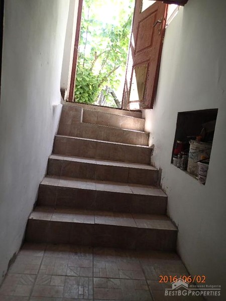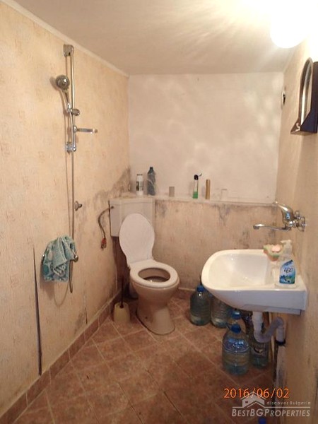 The house is renovated. It has external insulation and new electrical installation and plumbing. The joinery is double - wooden. The floorings are wood, laminate and terracotta. The heating is via fireplace with water jacket and solid fuel stoves.