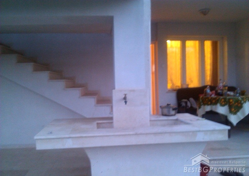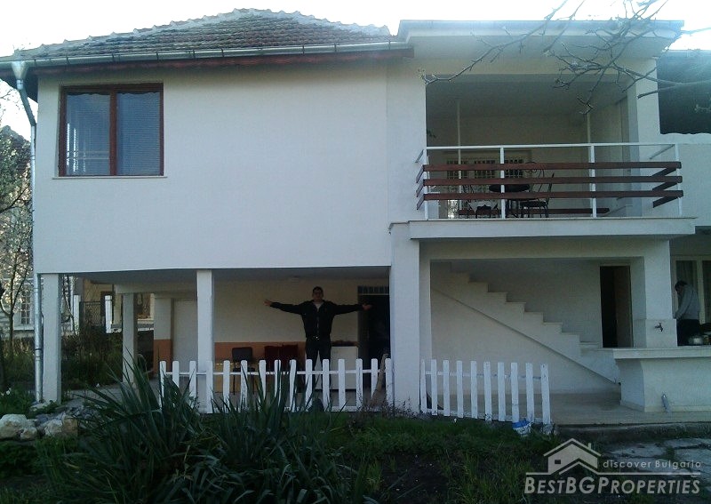 The house is renovated and has inside isolation. It comprises with total living area of 85 sq m and is built in a plot of land with size 1400 sq m. There is a large garden with repaired shed and an oven. There is inside bathroom with WC and new water pipes in and outside the house.