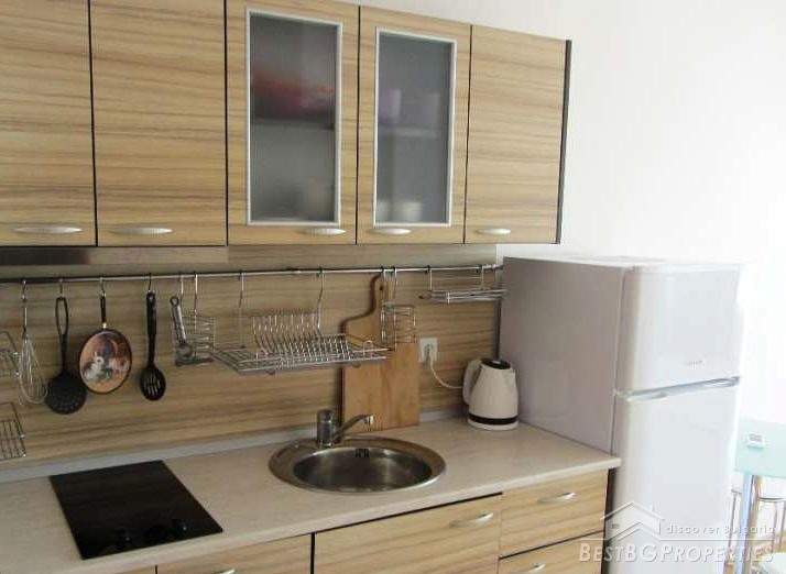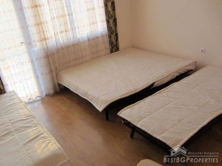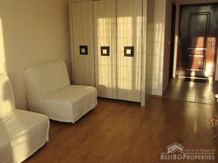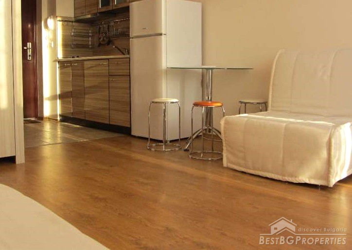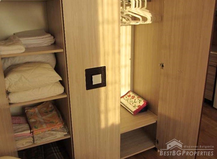 The apartment is fully furnished and equipped. It is part from a closed type residential complex with controlled access and lots of greenery. The studio has total living area of 33 sq m and consists of a kitchen box, living room, hallway, bathroom with toilet and a balcony. The view is towards the aqua park Nessebar.