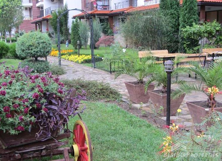 The complex is located close to the beach and the sea - 200 meters. The distance to the beautiful town of Nessebar is 300 meters. The complex has a swimming pool, cafe, restaurant, park, children’s playground, comfortable common areas, parking, supermarket, guard, spa and massage.