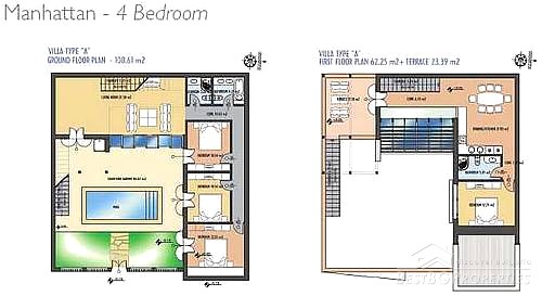 The Manhattan is a huge 3/4 bed roomed villa that at over 190 sq m. Complete with own swimming pool and terrace, this flagship villa is the one others will strive to equal. All furnished to the highest standards, complete with flat screen TV’s in every room, internet access and all the furniture you would expect in a home of this calibre. The Manhattan is big enough for 8 people. The villa has a car parking space, although with the Platinum Programme chauffer service, you can leave your own car safely parked in the gated community.