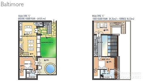 The Baltimore, a 2 bedroom villa with the same angular design as its larger cousins, but offering all the same high standards. However it still is a very sizeable 114 sq m offering accommodation for 4 people in luxury and space. The Baltimore has one car parking space allocated for the exclusive use of the owners or their guests.