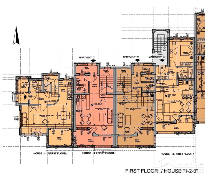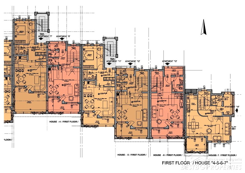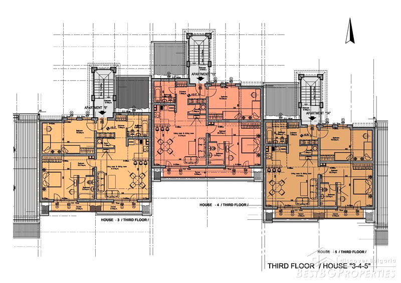 The complex comprises 4 villas and three 3-storey sections with 9 apartments and 3 penthouses. The apartments will be fully finished to the highest standards: