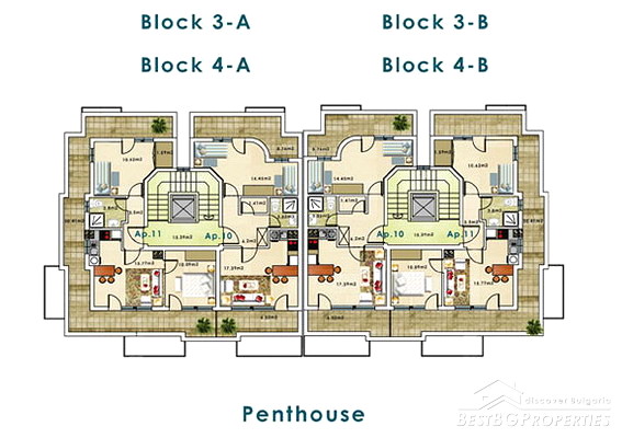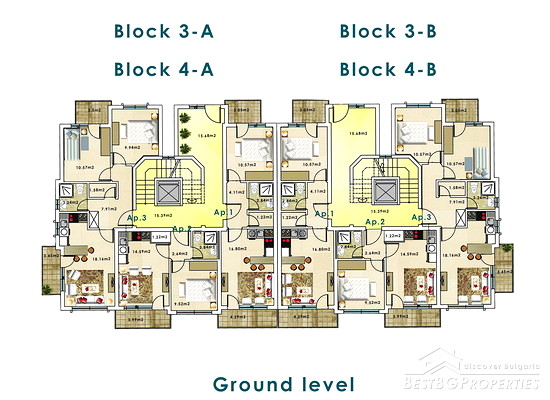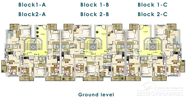 - 110 one and two bedrooms apartments distributed in 4 blocks arranged around the swimming pool