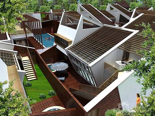 The Troon, a 2 bedroom villa with the same angular design as its larger cousins, but offering all the same high standards. However it still is a very sizeable 114 square metres offering accommodation for 4 people in luxury and space. The Troon has one car parking space allocated for the exclusive use of the owners or their guests.