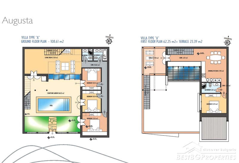 The Augusta is a huge 3/4 bedroom villa that at over 190 sq m. Complete with own swimming pool and terrace, this flagship villa is the one others will strive to equal. All furnished to the highest standards, complete with flat screen TV’s in every room, internet access and all the furniture you would expect in a home of this calibre. The Augusta villa has a car parking space. The Augusta Villas all face south for maximum sunshine hours.