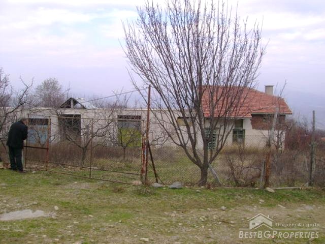 Spacious property in a picturesque Mountain area is our new suggestion for you. The property includes 3000 sq m plot in regulation; a two storey house and additional structures. The house built up area is 55 sq m. There are six rooms distributed between the two floors connected with an outer staircase. The first floor had one kitchen, a living room and one small bedroom. Upstairs there are two more bedrooms, second kitchen, bathroom and toilet. The house is solid and large but needs some final peace of work like rendering outside. Water and electricity are available as well as telephone line. There is an asphalt road reaching the property and the garden is spacious enough to build a garage.