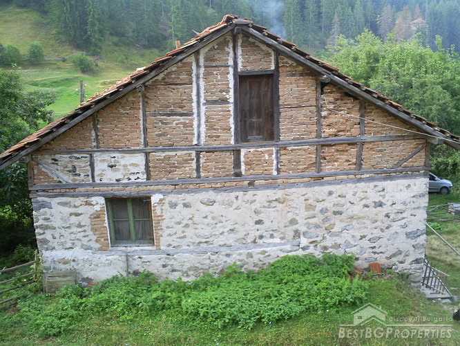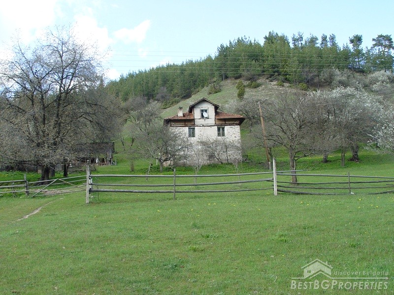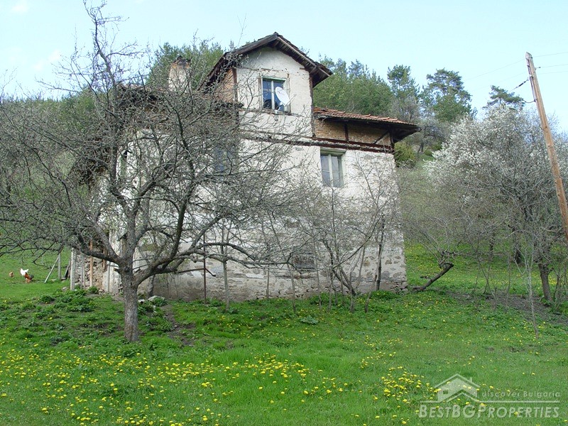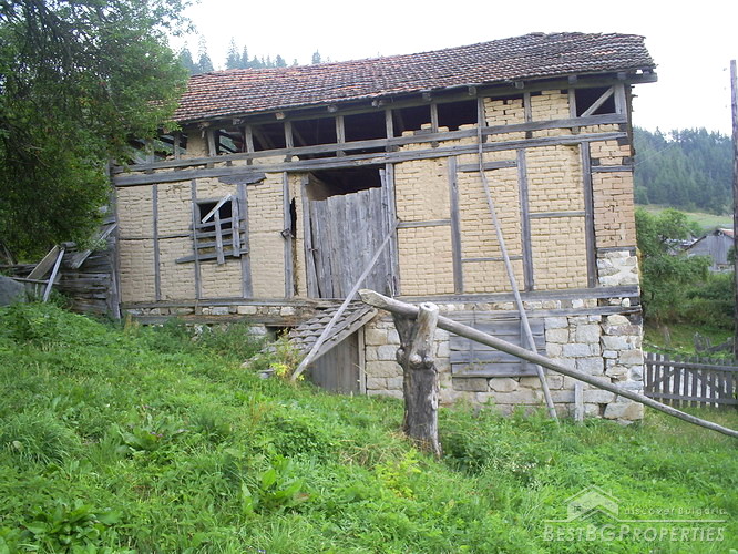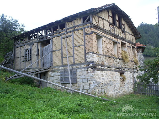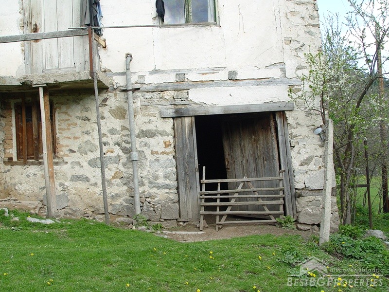 The house is two storey solid building half made of stone. It has running water, electricty and heating provided by a wood burner. The house needs some renovation to become fit to live in. It is surrunded by further out building for animals and barns.
