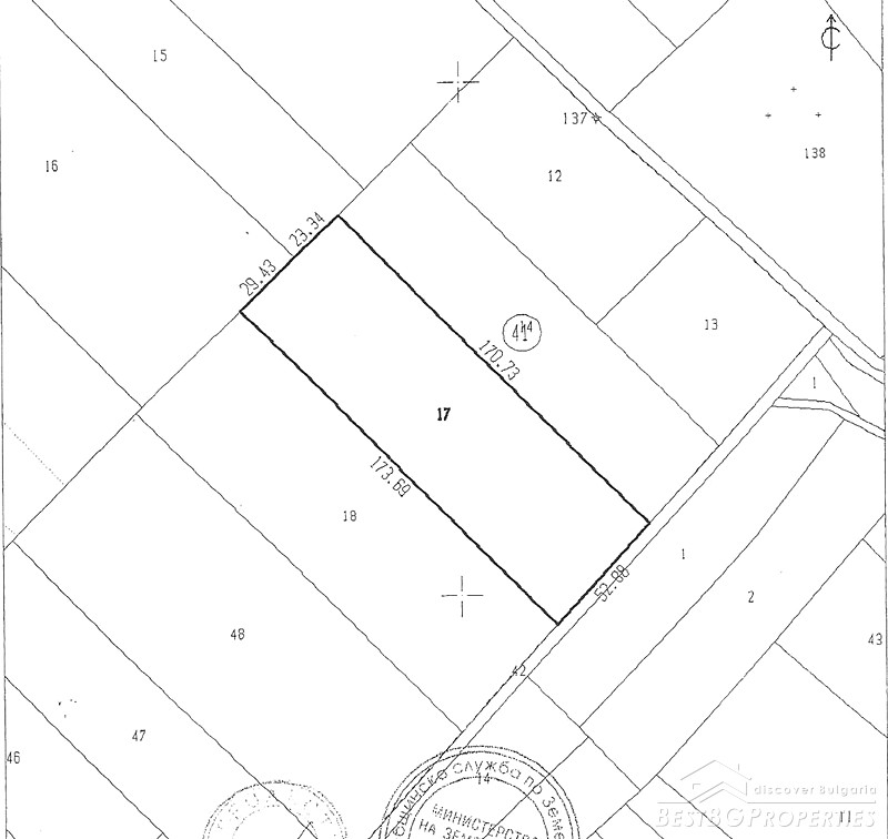 The property is situated right outside of the village. It is divided on two agricultural plots of land with sizes: 7000 sq m and 3000 sq m. The parcels are set close to one another as the biggest one is just 200 meters away from the end of the village. The total plot size is 10000 sq m. The property provides good possibilities for future investment. It could be used for agricultural needs or for construction after changing its status to regulation.