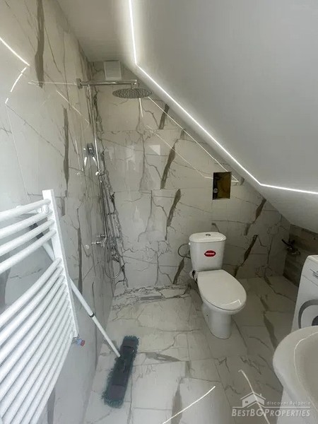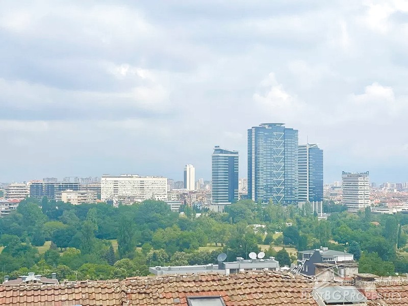Inside it has the following layout: entrance hall, large corridor, south-east facing, spacious living room (57 sq m), a sunny terrace, two bedrooms overlooking the National Palace and the center of Sofia (one with its own bathroom with toilet), a separate bathroom with toilet and a storage room.