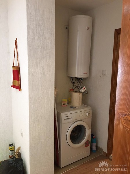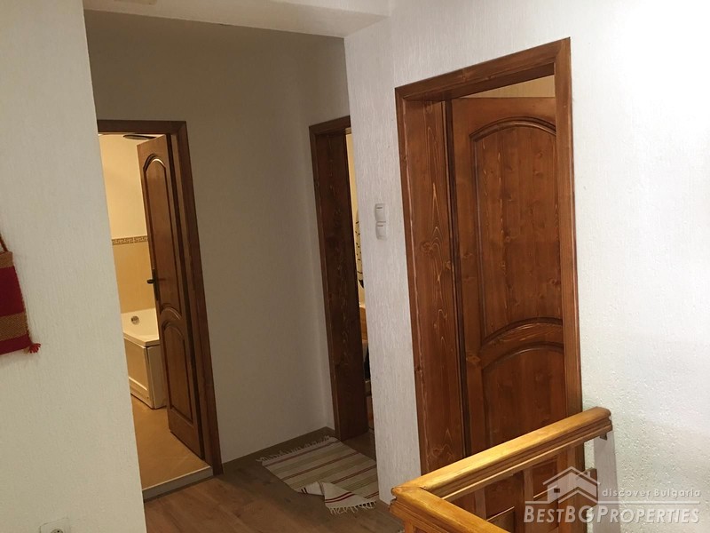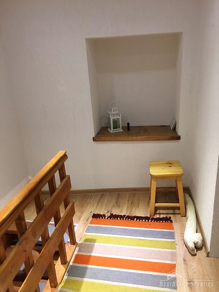 House is on two floors. The first one consists of a spacious kitchen and living room. The second floor has two lovely bedrooms and a bathroom with a bathtub. There finishing is of very high quality. Everything is either new or in perfect condition. The house has local heating.