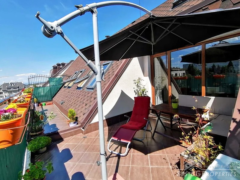 The apartment is located in the old part of Ovcha Kupel, near the NBU and in 3 minutes walk from the metro station. It is close to a park, and another one is to be built. The apartment is very light and warm, with a huge terrace. It is on the top - 5th floor, and there are only two apartments on the floor.