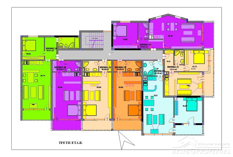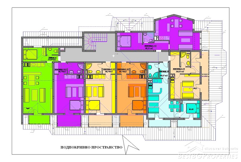 Pirinplace is a modern complex with apartments and a hotel part. The facade is in a typical for the region Old Bulgarian Style. It is situated in a quiet and calm place in the centre of Bansko. It is surrounded by other apart-hotels. In a short distance there are the prestigious four-star hotels-‘Orpheus' and ‘Pirin'. The lifts are only 10 minutes walking distance.It is built with quality materials. The apartments are made of red bricks, aluminum joinery, the outside doors are armored, and they have also inside doors. The building is isolated with high quality heat and hydro isolating materials. The builder is one of the biggest building companies in Bulgaria.The total built up area of the complex is 2500 sq m.