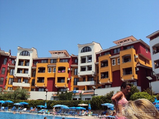 We would like to offer you a wonderful apartment for sale located in a huge apartment complex on the first line of the sea beach resort of Aheloy. The complex is situated on the coast line, just in a 20 minutes drive from the town of Bourgas, and in close vicinity of Sunny Beach resort.