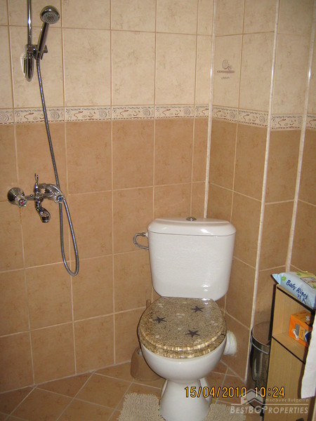 The property is satiated on the main street of the Cherno More quarter of the town in an area with all amenities and communications. It is set on the second floor of a six floored new residential building finished one year ago. The apartment comprises total living area of 80 sq m and consists of a large living room with kitchen and dining areas, one bedroom, bathroom with WC. There are also two balconies with outstanding panoramic view. The apartment has south-eastern exposure.
