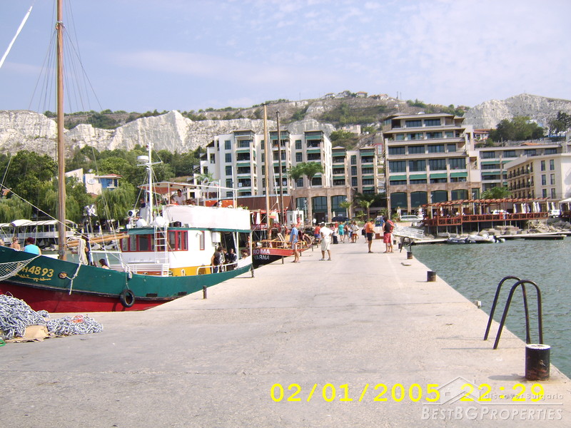 The complex is located on the first line, just in a 10-minute drive from Albena, 25 minute drive from Golden Sands resort, and 30-minute drive from the Kaliakra fortress. The complex has a private yacht marina, shopping and fitness centre, 2 restaurants, and an open swimming pool with a sea view.