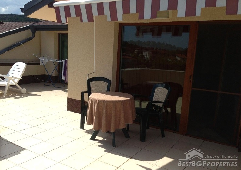 The apartment is part from a closed type residential complex with amazing view of the sea. It has total living area of 106.23sq m with great sea panorama. It is on the last - fourth floor). The apartment consists of a spacious living room with separate kitchen (25 sq m), bedroom (16 sq m), bathroom and toilet, and a large terrace (22 sq m).