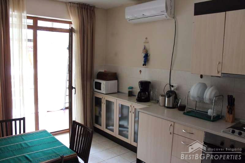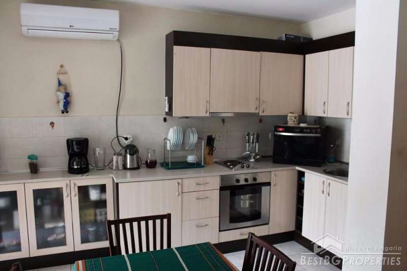 The apartment is equipped with all electrical appliances - washing machine, dishwasher, stove, microwave, etc. The price also includes a TV set, boiler, Inverter air conditioner of high class. There is a fireplace.