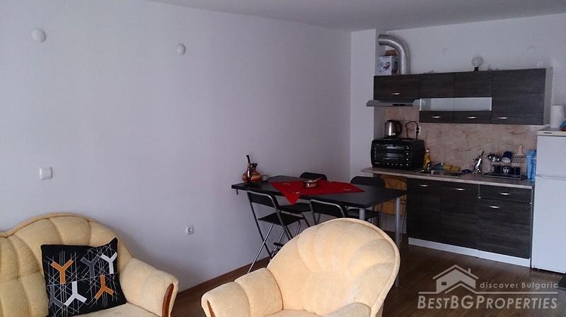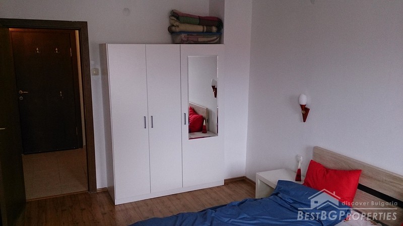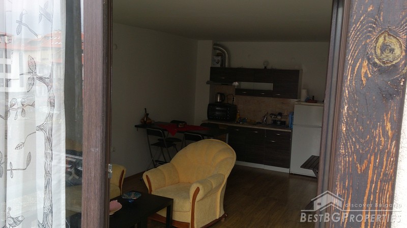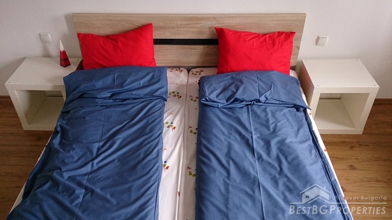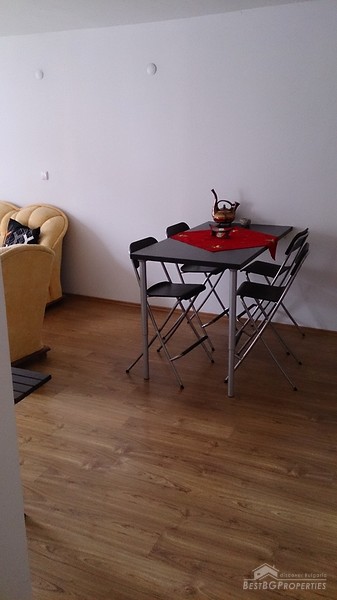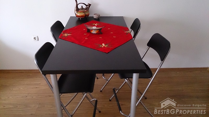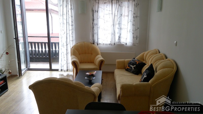 The apartment is part of a newly built residential complex located in the central part of the town just around 300 meters from the ski lift. It comprises amazing panoramic view over the mountains and the resort. The apartment is situated on the last - fourth floor of the four floored building. It comprises total living area of 64 sq m and consists of a one bedroom, living room with kitchen box and dining area, bathroom with WC and a shared balcony with nice view. The apartment is for sale fully finished - "on key" stage with laminate floors, latex painted walls, fully equipped bathroom with WC - finished with terracotta and tiles. The property is for sale with the furniture. It has top location only 50 meters from one of the largest hotels in Bansko. It has amazing southern exposure. No maintenance fee included.