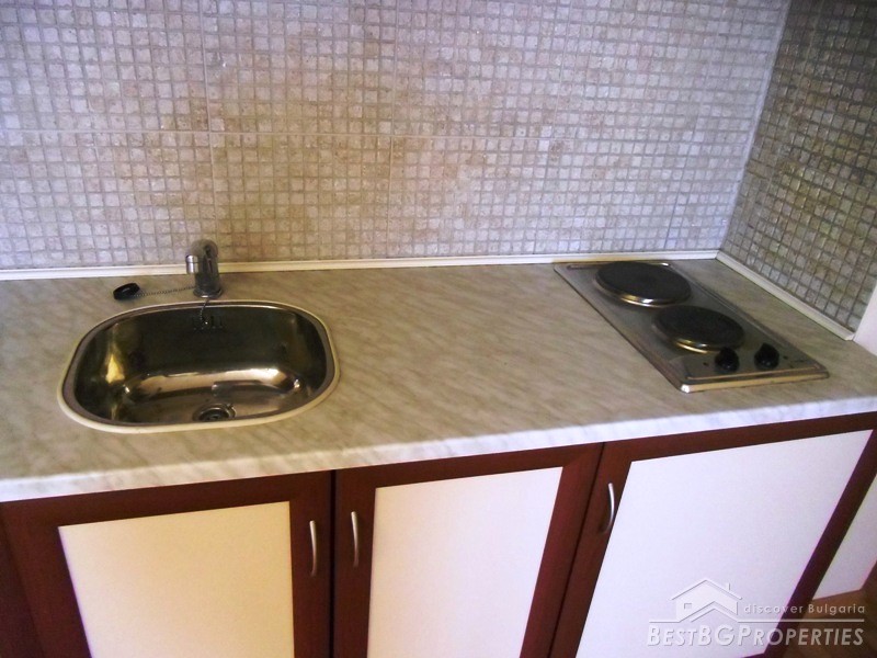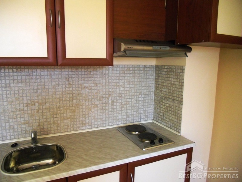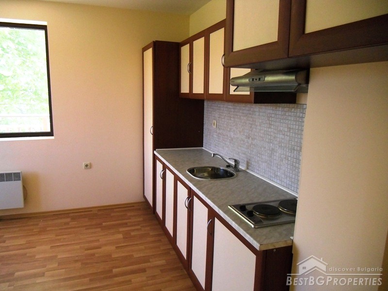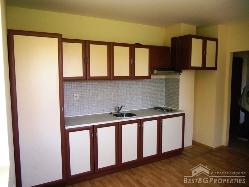 It is a very spacious, sunny and cozy apartment with south-eastern exposure. The price includes full finishing, kitchen and bathroom equipment. The floors are laminate covered, terracotta in the corridor and balcony and faience in the bathrooms. The walls and ceilings are painted with high quality latex paint. The kitchen equipment includes cupboards, sink, hot plates and an absorber. There are also mounted radiators in every room.