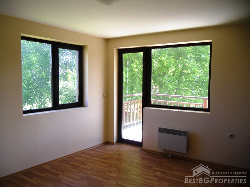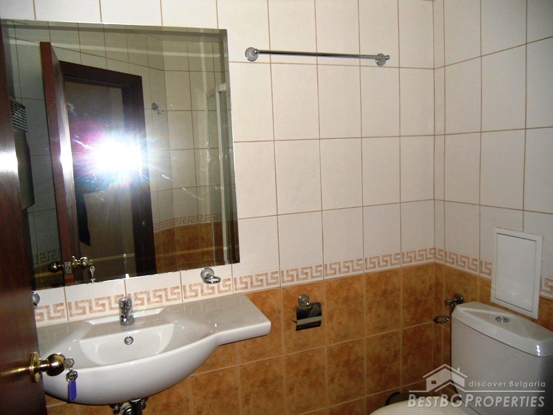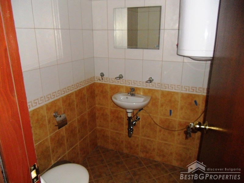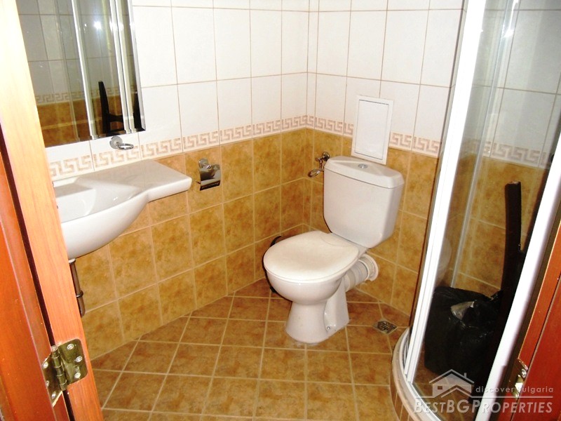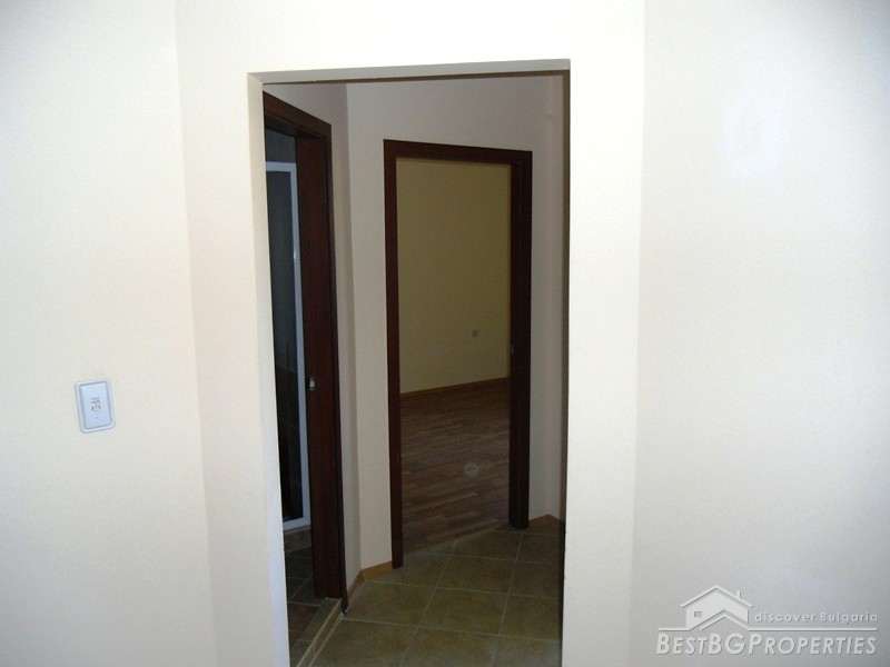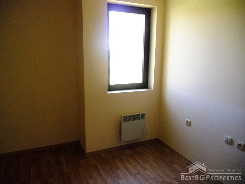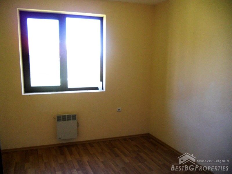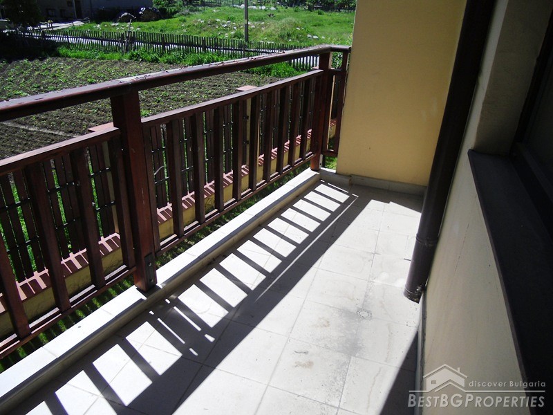 The apartment is situated on the second floor of a newly constructed residential complex close to the stadium in the town. It has total living area of 80 sq m, distributed between two bedrooms, two bathrooms with WCs, spacious living room with kitchen box, and a balcony with amazing view towards the mountain.