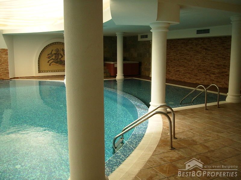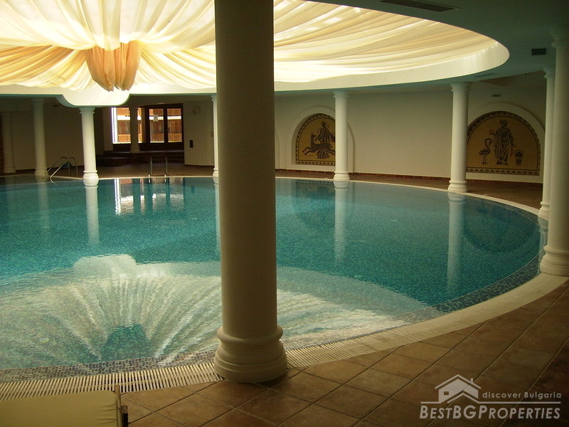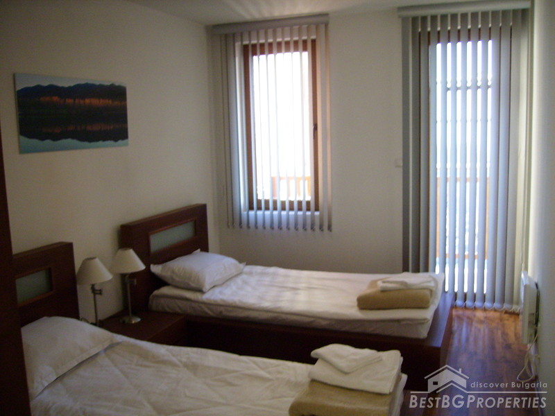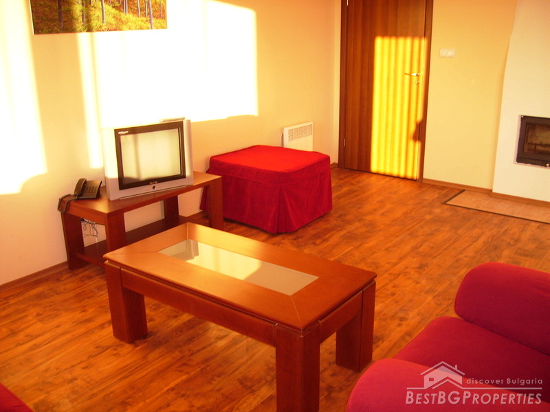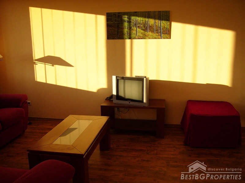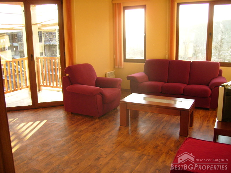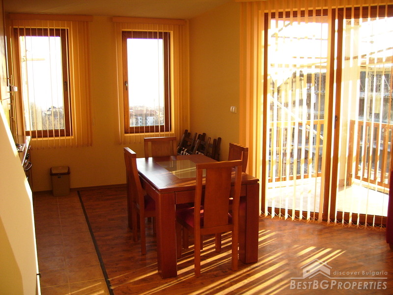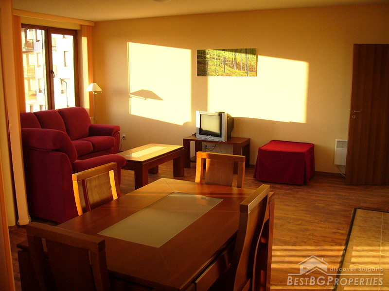 We are offering you a large 68.5 sq m, 1 bedroom, 2 balcony apartment with beautiful views over Bansko town and mountains. The apartment could sleep up to 6 people with additional furniture (ski on/ ski off option). It is situated in a 4 star hotel with facilities including swimming pool and restaurants.