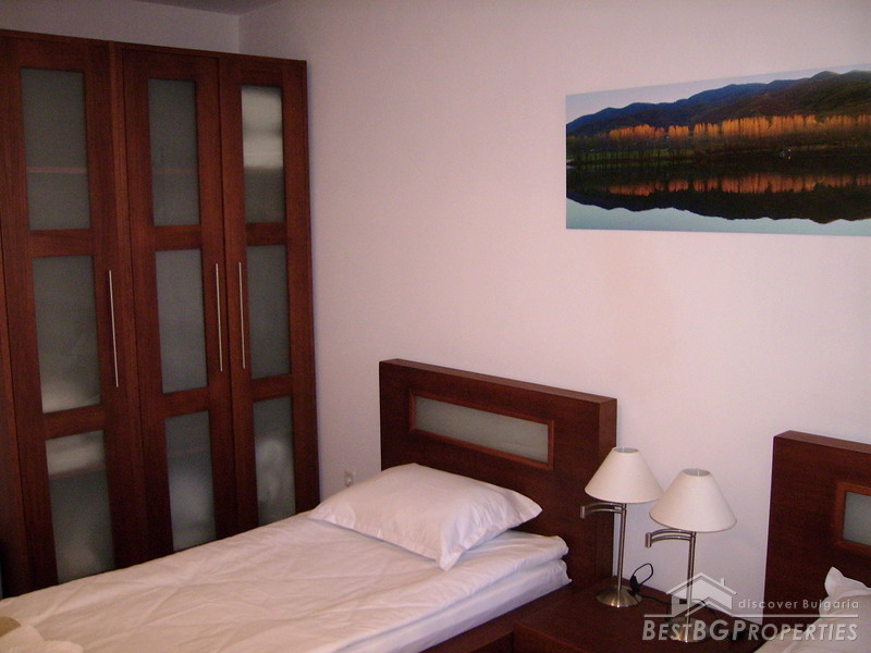 This luxury one bedroom 3rd floor apartment is situated in an ideal position for summer or winter holidays positioned at the base of the Pirin Mountains. It has a complete kitchen for all your needs, electric convection heating throughout and a log burning fire for those snowy winter nights. It is 5 mins walk from the gondola lift station, and 10 mins walk from the old town of Bansko. The apartment benefits from 2 furnished balconies with views of the Pirin and Rhodope mountains.