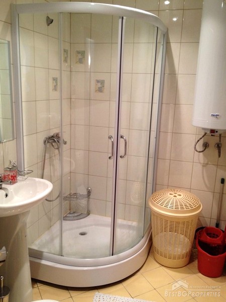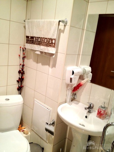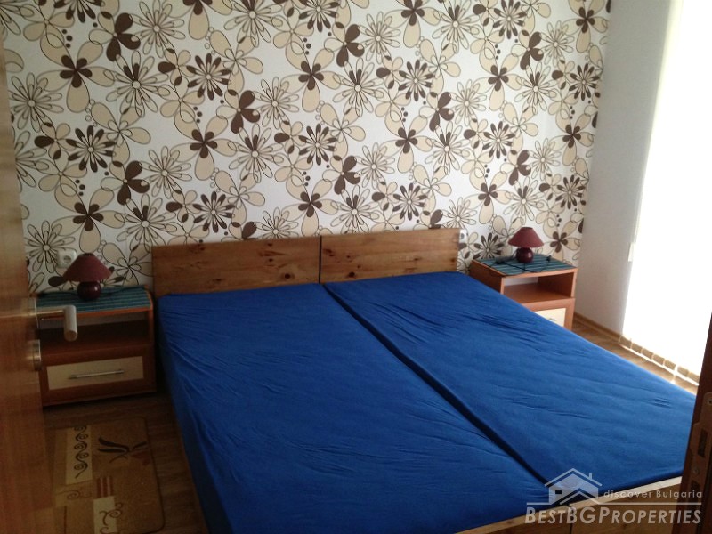 The offered one-bedroom apartment is situated on the first floor. It has total living area of 61 sq m and 51 sq m of clean living space without the common shares. The living area is distributed between a living room with kitchen box, one bedroom, bathroom with WC and a terrace. The apartment is sold fully furnished, ready to move in or rent out.