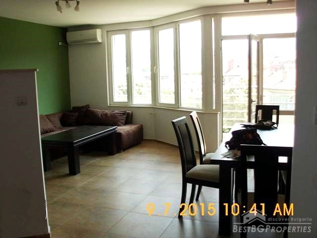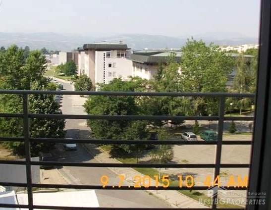 This is a cozy, two-bedroom apartment with good views, located in a new building in the center of Blagoevgrad.