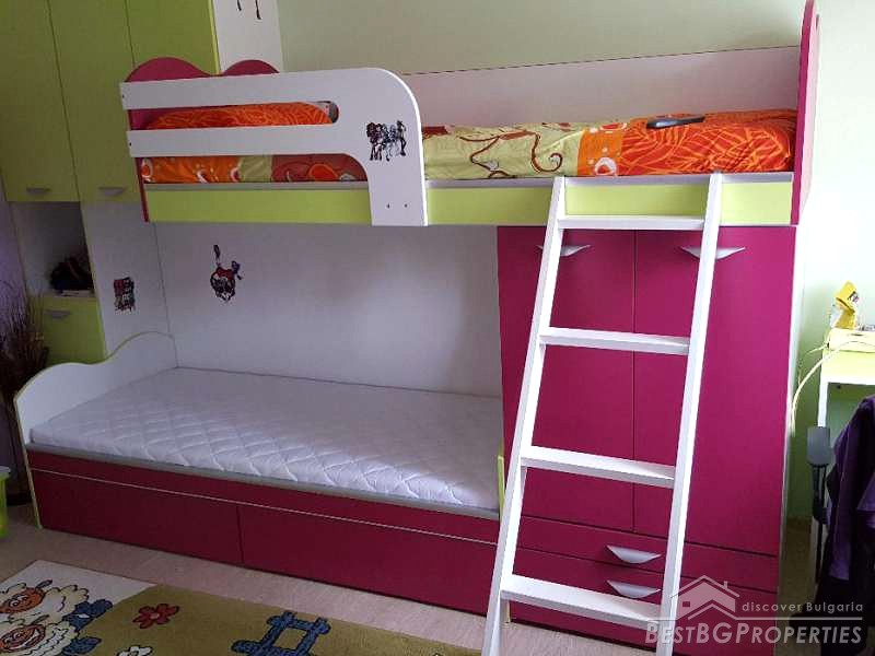 The total living area of the apartment is 70 sq m. It consists of a very large living room with sleeping area and kitchen, children’s room and a bathroom with WC. The apartment is sold with all of the available furniture. It is suitable for a small family or for renting – the property located near the campus of the Southwestern university.