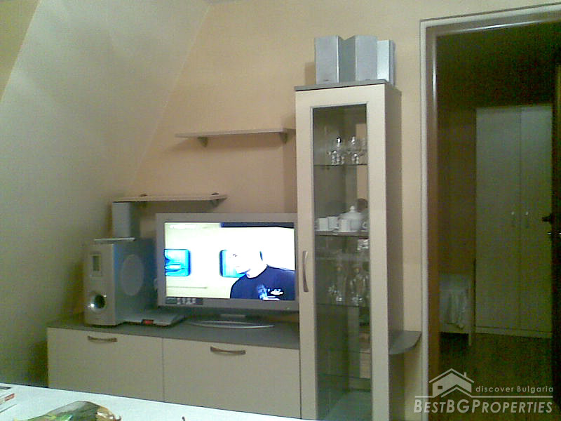 The apartment has very good distribution of the premises. It consists of a living room, one bedroom, bathroom and a corridor. The apartment is situated on the last, fifth floor in the building. It is middle for this floor, which means there are minimal ceiling slopes.
