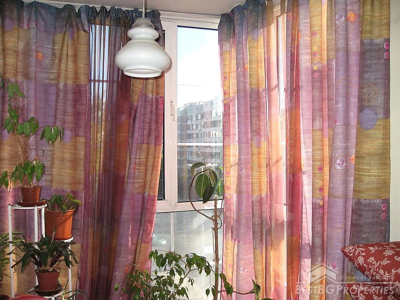 The apartment has a south-western exposure and is situated on the fifth floor of a residential building in the quarter Lazur. It is situated near the Sea garden. There are many amenities just nearby - a high school for foreign languages Vasil Levski / The Russian high school/, kindergartens and health centers, as well as the Burgas Free University which makes the quarter very attractive for living.