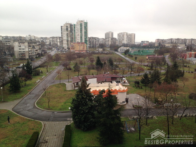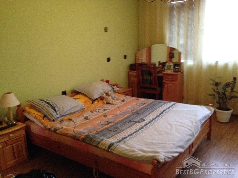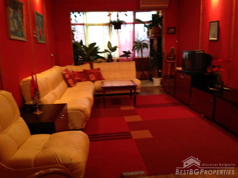 This is a spacious two bedroom apartment, located in a residential building in Izgrev quarter of Bourgas. The property consists of a kitchen, living room, two bedrooms, two sanitary premises, three balconies (two of them glazed), closet and a pantry in the basement of the building. The apartment has total living area of 106.5 sq m.