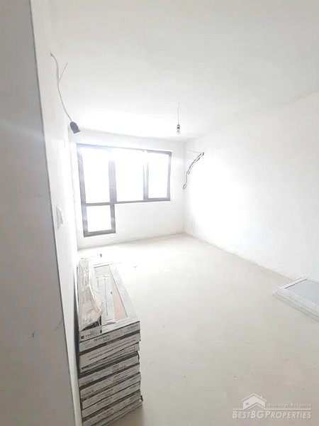 The apartment is located in Lazur district in the city of Burgas. It is a one-bedroom type and offers to its residents a total living space of 61 sq m. The apartment is located on the 5th but not the last floor in a newly built residential building. The building received ACT 16 in year 2021.