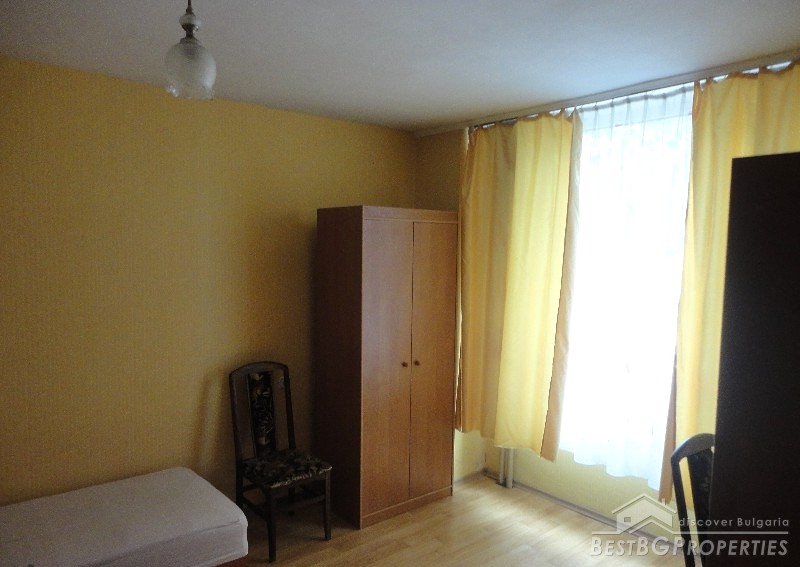 The property is situated in an old construction, brick building. It consists of two separate large rooms, large kitchen, separate bathroom and WC, closet, large corridors with many fitted wardrobes. There is one large southern balcony, possible redistribution of the premises. The total living area is 75 sq m.
