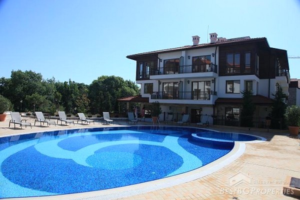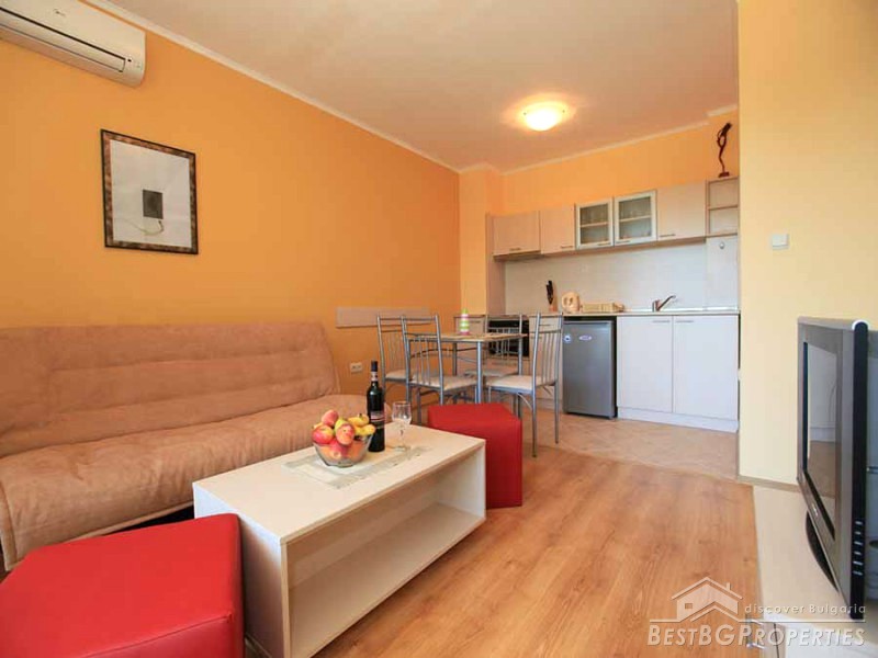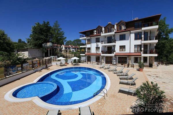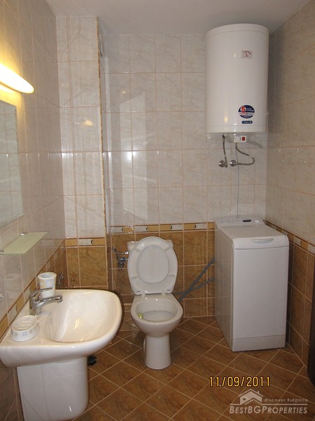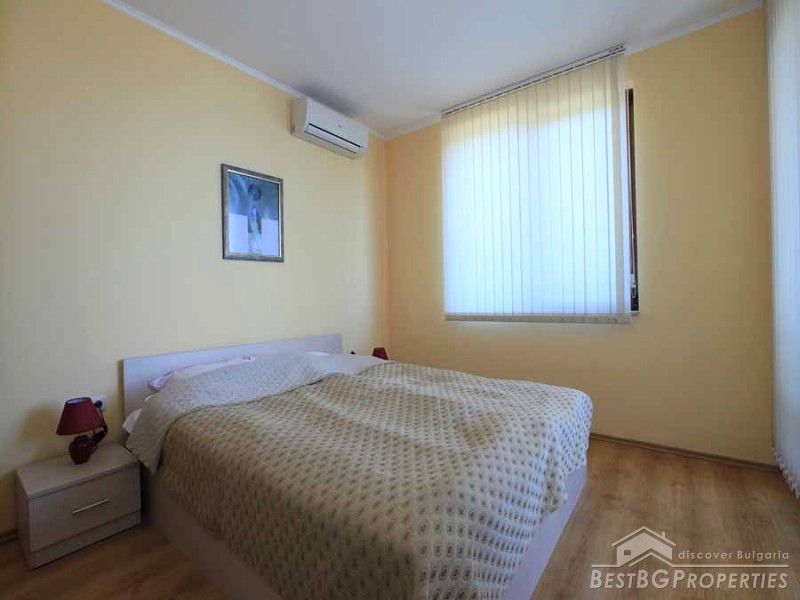 This is another cozy apartment for sale located on the Bulgarian seaside. The apartment is part of a small complex situated in one of the oldest towns in Bulgaria - Byala. It is just 30 meters from the beach and offers swimming pool for adults and children, recreation and relaxation. Nature has generously donated this picturesque region with favorable climate, shallow sea with a large beach, golden sand and clear water. The holiday complex is gated with controlled access, security guard and maintenance all year round.