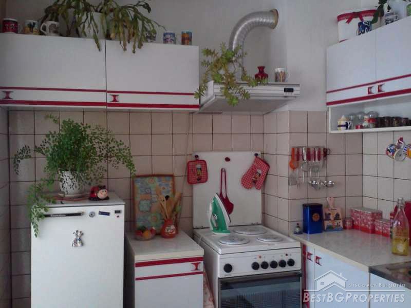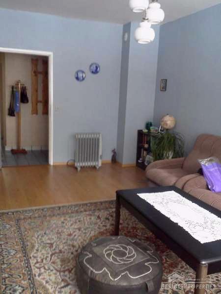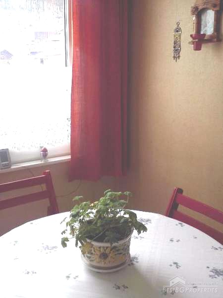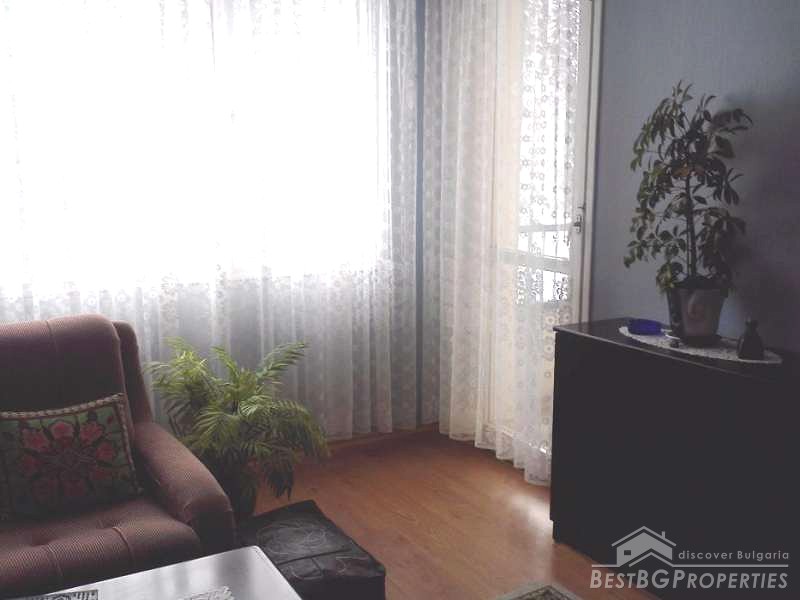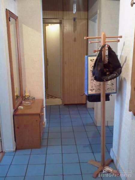 The apartment is two-bedroom, with clean living area of 85 sq m. It consists of a living room, kitchen, two bedrooms, bathroom, WC, closet, two balconies and a corridor. The property faces north-south. It is on the fifth floor of a six-storey panel building. The condition is very good. The price includes furniture and equipment. The building has elevator.
