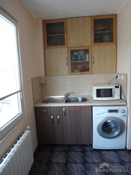 The apartment is after a complete renovation and has new replaced electrical installation, new plumbing, new bathroom and toilet with faience and terracotta. The bedroom and living room have laminated parquet floors, terracotta kitchen, and new kitchen equipment. There are completely replaced PVC windows, aluminum doors, isolation through out the whole apartment from the outside. There is local heating and inverter air conditioners, armored front door, glazed balconies.