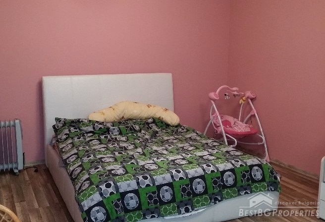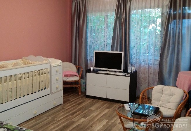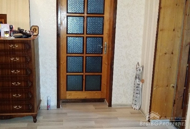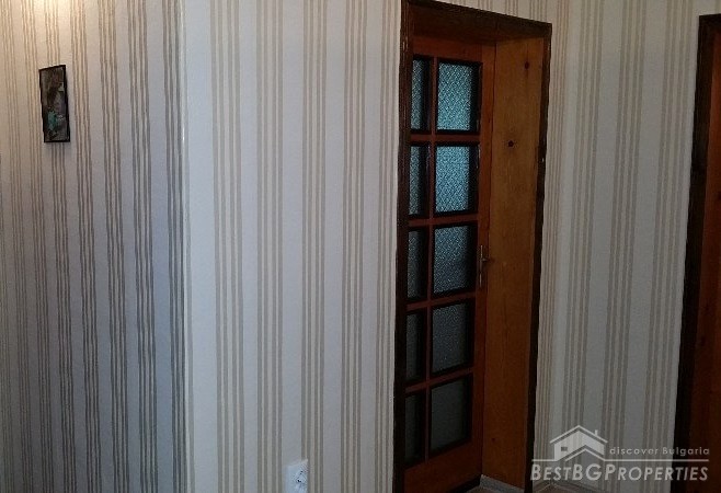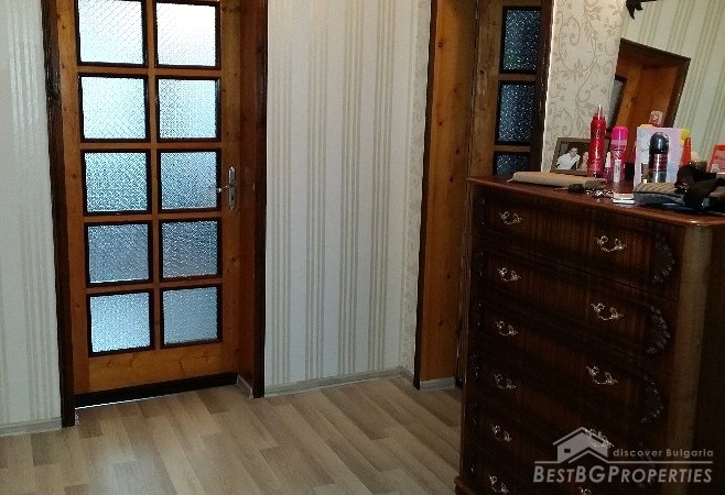 This is an offer for a fully renovated, brick apartment for sale located in the town of Dobrich. The apartment is on the second floor of a 7 storied residential building, finished in 1990. It is completely renewed, has total living area of 125 sq m and consists of the following: 1 bedroom, living room, two children’s rooms, kitchen, hallway, bathroom with WC, separate toilet, laundry room, 3 terraces two of which glazed.