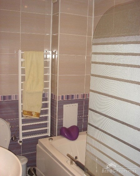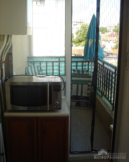 The apartment comes completely furnished and equipped with everything necessary. There are all kitchen appliances, soft furniture, tables and chairs. It is ready to move in right away.