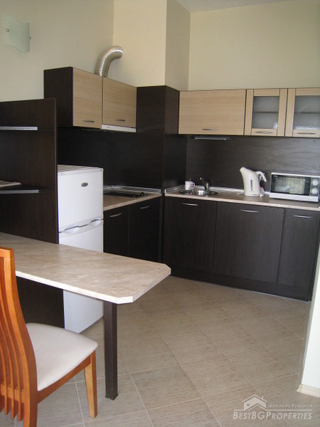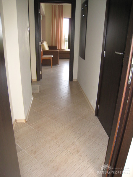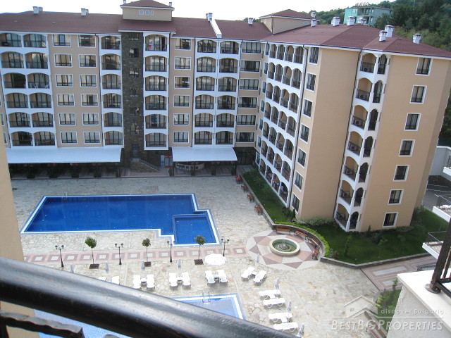 This is an apartment in a luxurious complex located in the famous Bulgarian Black Sea resort Golden Sands, only 100 meters from the sea. The complex is new, entered service in 2008. It is situated in the central part of the resort, surrounded by four five-star hotels. The city of Varna and the International Airport is 18 km away, it takes 15 - 20 minutes with the bus, 5 euro for a taxi. The distance to Bourgas is 147 km, 52 km to the town of Dobrich. There are few swimming pools with mineral water in the resort. Golden Sands resort is famous with its nice golden sand and long beaches. There are many amenities in the area such as bars, restaurants, clubs and different entertainment centres.