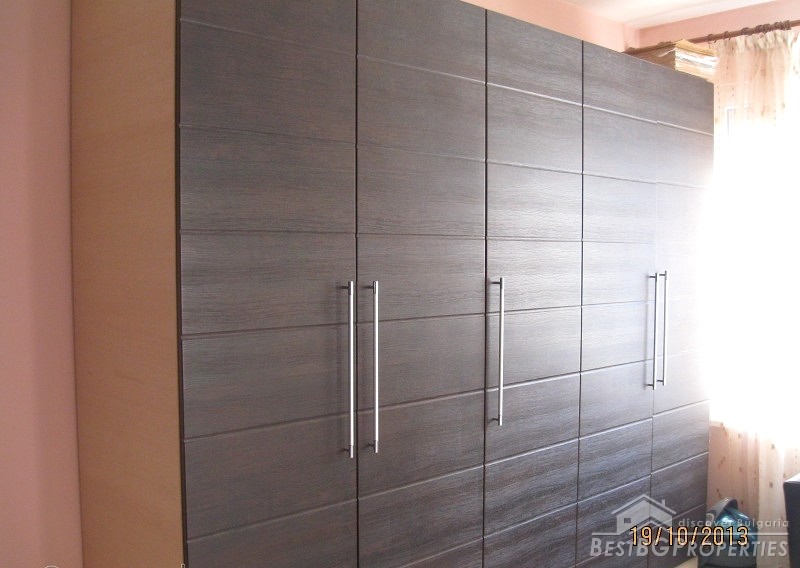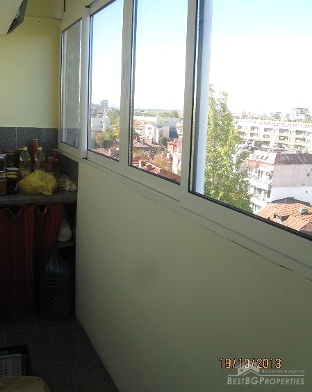 The offered apartment is located in the central part of Haskovo town. It is part of a brick residential building close to a police station and school. The apartment is very Spacious, with panoramic views. It is always sunny, with two balconies - south and north facing. The apartment itself has south-west-north exposure. The west wall has isolation and the north facing part has a glazed balcony. Replaced are the electrical installations, new windows. The flooring in the bedroom is laminate, natural oak in the living room. In the hallway, kitchen and the other room – terracotta with under floor heating. There is also an air conditioner and a fireplace.