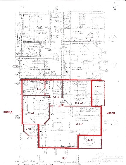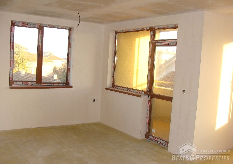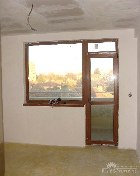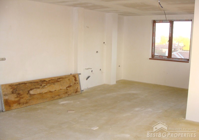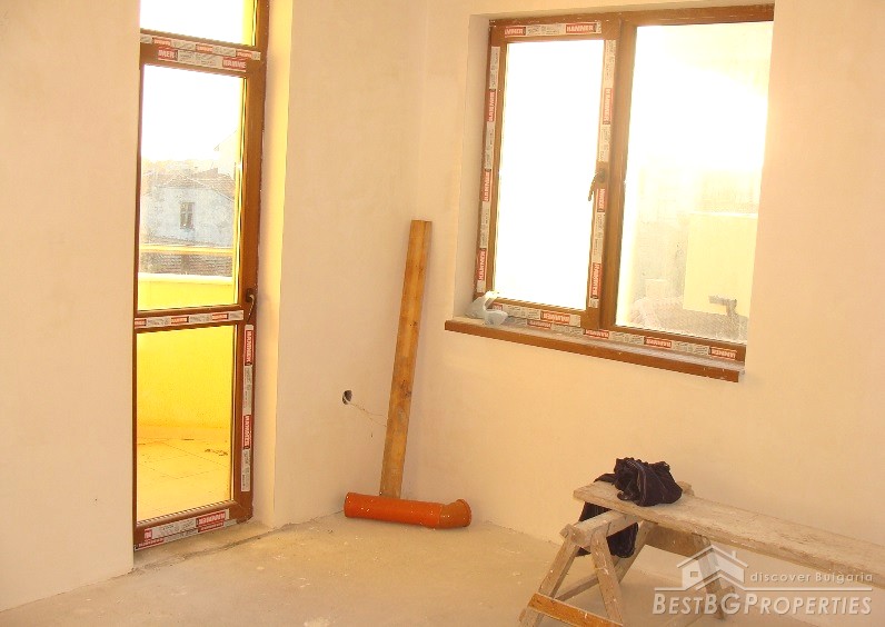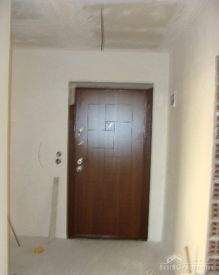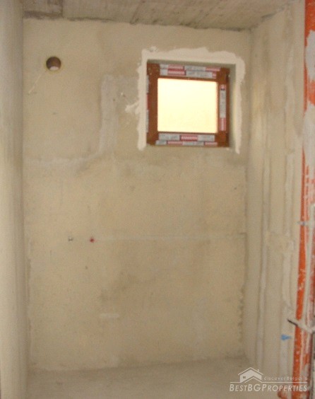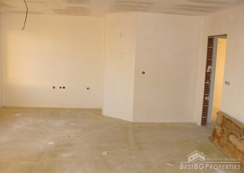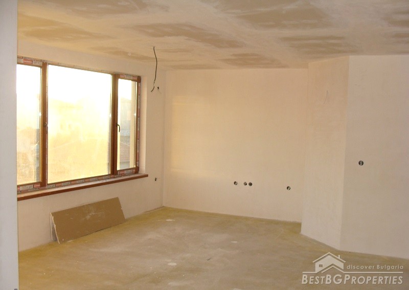 The apartment is two-bedroom type and has total living area of 100 sq m. The finishing is according the Bulgarian standards - plastered walls, cement floors, plasterboard with mineral wool on the ceilings.
