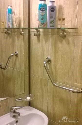 The apartment is one-bedroom type. It has total living area of 55 sq m and consists of a living room with kitchen box, bathroom with WC, one bedroom and a corridor. The apartment is fully equipped and furnished, with fitted kitchen and all electrical appliances. The property faces east-south.