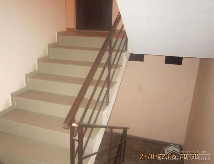 The apartment is located in a new residential building, on the first residential floor, with south-eastern exposure. It is fully finished - turnkey. The finishing includes laminate and terracotta flooring, latex paint, PVC windows, etc. The apartment benefits with new kitchen equipment.