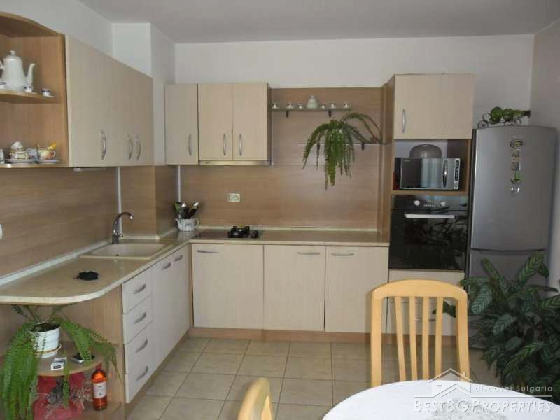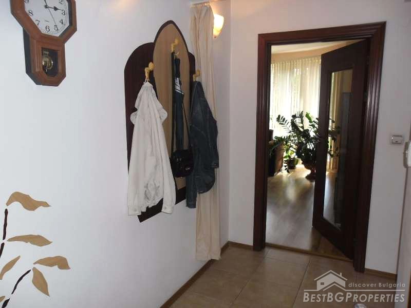 Offered for sale is a furnished three-bedroom brick apartment of new construction in Pazardzhik.