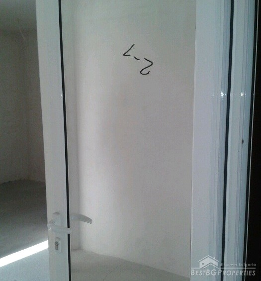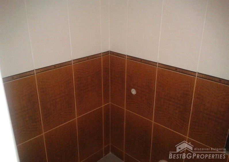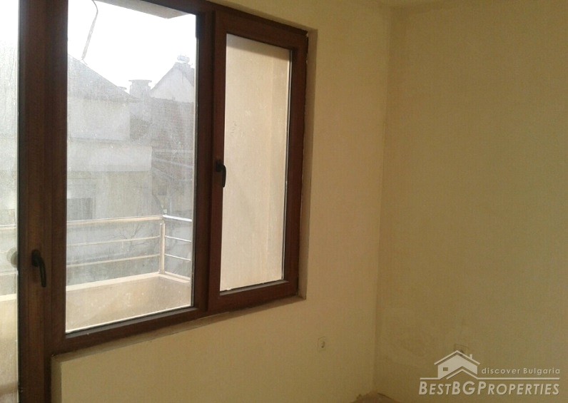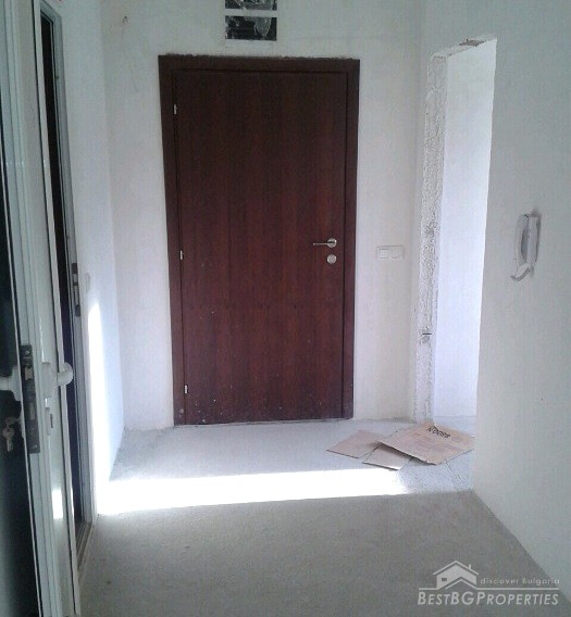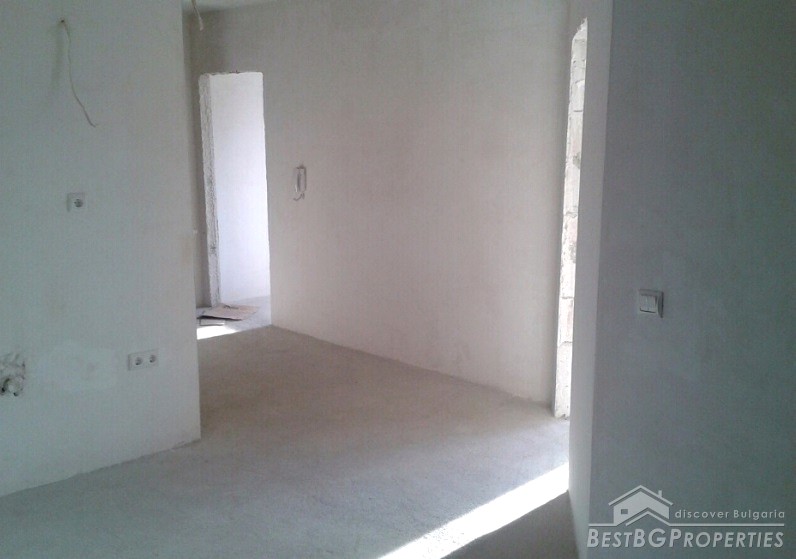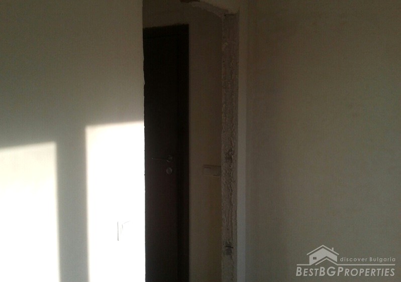 We are offering you two-bedroom apartment, situated in a new residential building in the administrative center of the town. The apartment consists of a living room and kitchen together, two bedrooms, bathroom and toilet together, two balconies and a corridor. The total living area is 83 sq m. The apartment was finished in 2010 and has Act 16 permission for usage. The stage of completion is not final – on plastering and putty, according the Bulgarian standards. There is hydro and thermal isolation, wiring, finished bathroom with WC. The property is on the second floor out of 5. The orientation is towards south.