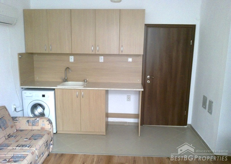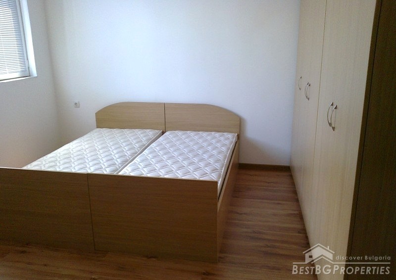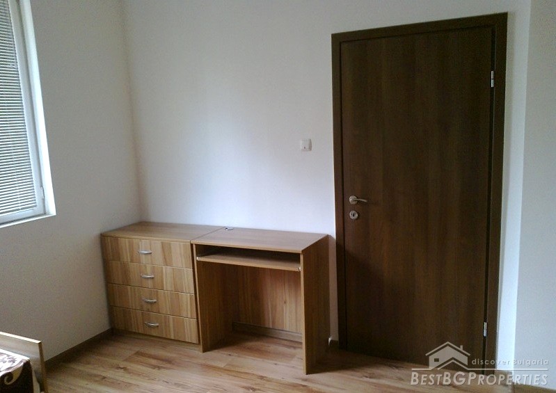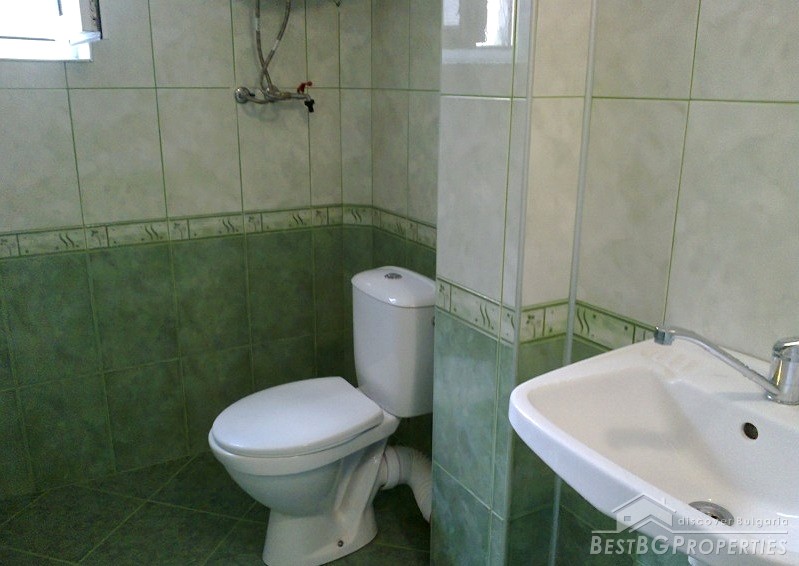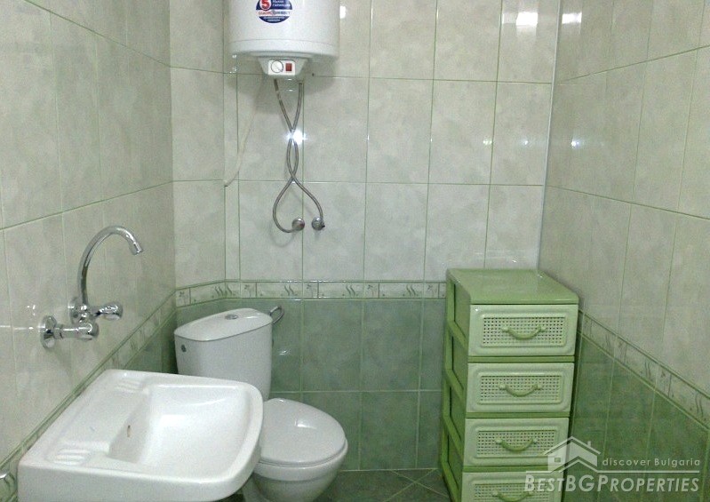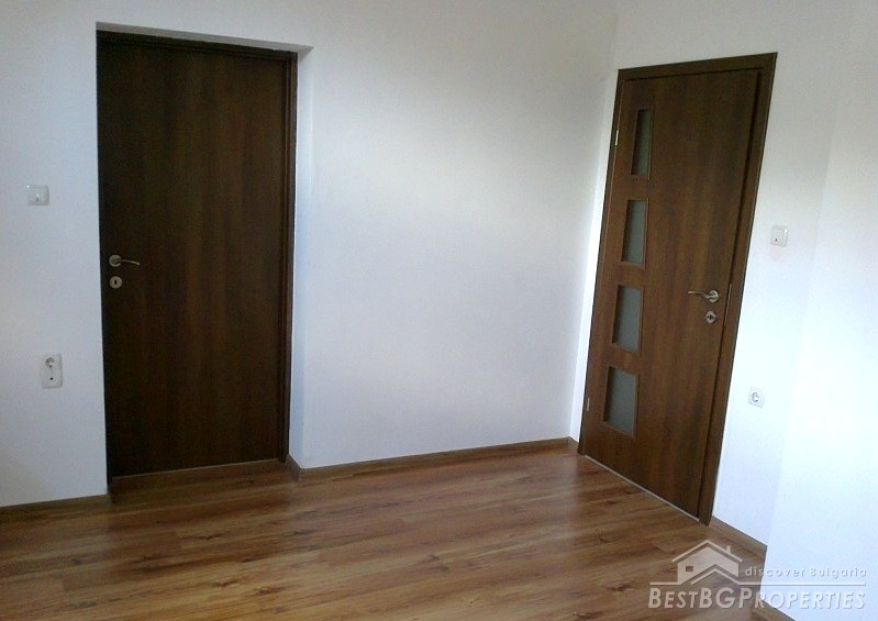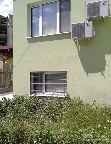 The apartment is situated on the first floor of a three-storey brick residential building with one apartment for each floor. The property has total living area of 112 sq m distributed between two bedrooms, living room with kitchen box, and a bathroom and WC. The price also includes a ground floor premise, additional attic room with WC and bathroom, and 1/3 from the yard surrounding the building which is -244 sq m. In the yard there is also a parking space. The apartment has south-west exposure. It is after a complete renovation which was finished in 2012. Installed there are boilers, air conditioners - all under warranty. The finishing includes laminate floors in each room, terracotta in the kitchen box, latex painted walls and ceilings, fully equipped bathrooms finished with terracotta and faience tiles. The apartment is perfect and ready to move in.