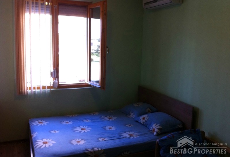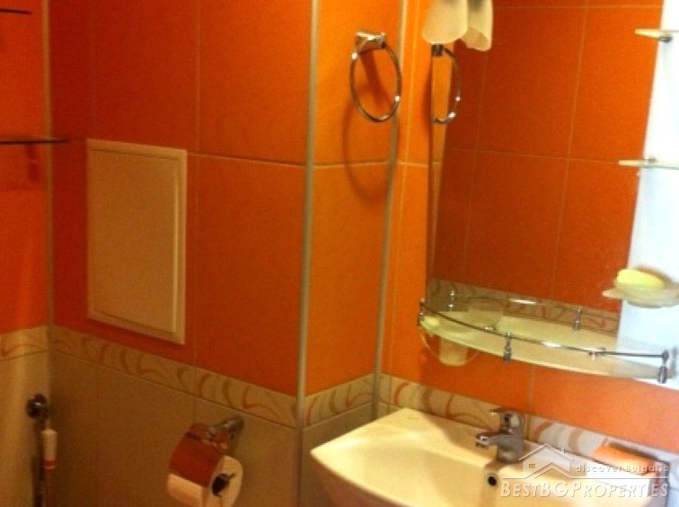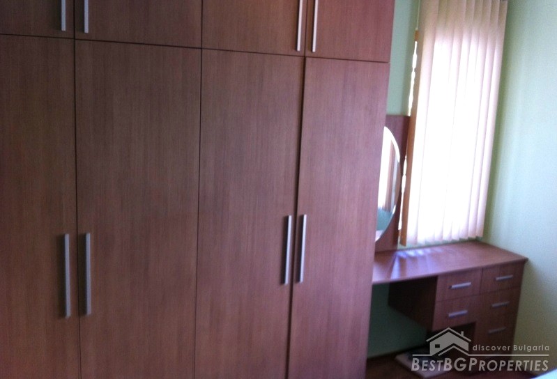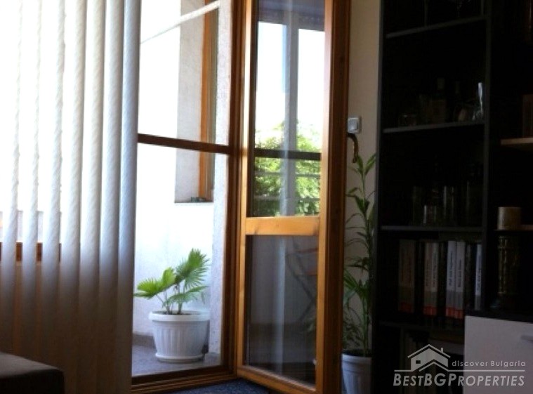 The apartment is ready to move in and is equipped with two inverter air conditioners with plasma generators Haier (very economical), two LCD LED TVs – 32 inch and 26 inch Samsung, iPad 2, Wi-Fi 3G, built-in oven and ceramic hobs Electrolux. There is an extractor, fridge, washing machine, microwave Samsung, parquet and carpet floors, wooden window joinery with five chamber glass, custom furniture, bathroom, and WC with Spanish terracotta. The apartment has mountain views. The price also includes a basement and storage. The property is situated close to a park, supermarket, school, kinder garden and a restaurant.